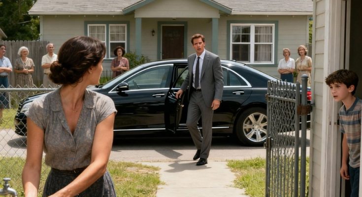 Children with chalk-stained knees stopped mid-game. An entire town paused as the car parked in front of her small, weather-beaten home. Elena’s heart thudded. People like that didn’t come to Cedar Street. The door opened. A tall man stepped out, his suit immaculate despite the dusty road. His hair was neatly styled, but there was something familiar in the way it fell over his forehead. He looked around slowly before his eyes landed on Elena. And in that moment, the world stilled. “Elena?” His voice was soft, tentative, as if afraid she might vanish. Her breath hitched. It was him. The man from the storm. The man she never told anyone about. The man who had kissed her with the promise of tomorrow and disappeared without explanation. Before she could respond, his gaze drifted to Jamie—who stood frozen, wide-eyed, toy airplane dangling from his hand. Adrian Cole—because that was the name he soon gave—stared at the boy as if seeing a ghost. Jamie’s dark hair curled just like his, the same dimple appeared when he bit his lip, and those green eyes—clear as emerald glass—left Adrian visibly shaken. He stepped forward, voice unsteady. “Is he… mine?”