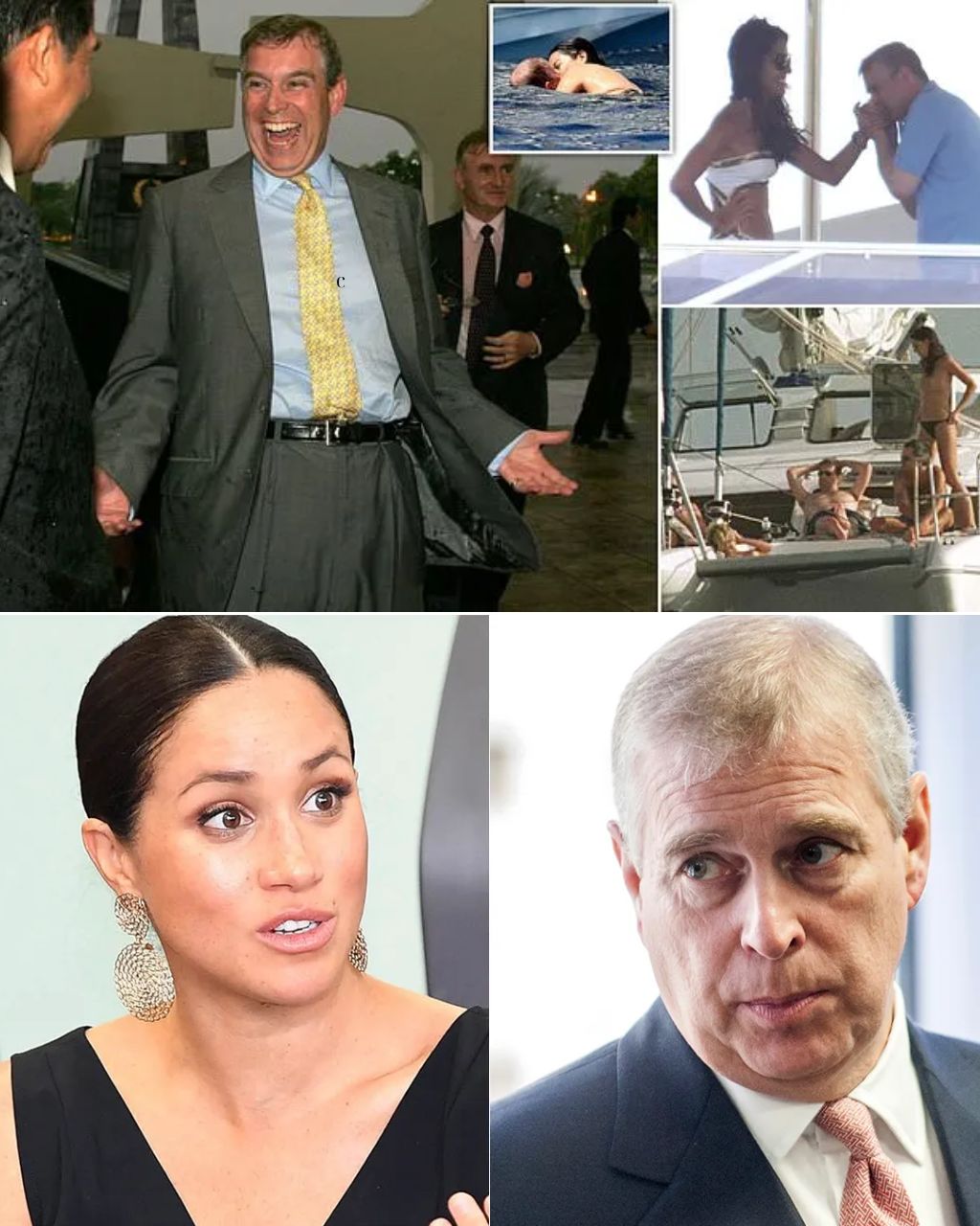 “Just 7 Hours Ago! A Scandal Involving Meghan Markle and Prince Andrew Is Being Linked in Leaked Yacht Photos, Which Is Shaking the Monarchy to Its Core. Palace Sources Claim That King Charles Is “Stunned and Furious,” and Senior Aides Are Demanding Immediate Action. “This Is Not Just a Rumor — It’s a Disgrace,” an Insider Said. “If He Doesn’t Immediately Revoke Her Title, the Monarchy Will Bleed.” an Unprecedented Royal Crisis Has Been Brought on by the Alleged 14-Year-Old Bombshell Photos. “The Crown Can Forgive Many Things — But Never Humiliation,” a Former Palace Official Said Calmly. “Charles Has To Decide Between Honor and Blood When the Clock Is Ticking.”