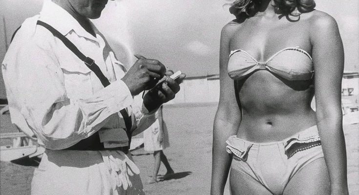 The backlash was swift and global. Pope Pius XII declared the garment “wicked,” leading to statewide bans in Catholic strongholds like Italy, Spain, and Portugal. In the United States, the bikini was prohibited on many public beaches, viewed as an emblem of moral decay. Even as late as the 1950s, the tension remained palpable. A famous viral photograph from 1957 often resurfaces on social media, purportedly showing an Italian police officer in Rimini issuing a ticket to a young woman simply for wearing a bikini. While historians debate whether that specific image was a staged publicity stunt or a genuine arrest, the context behind it is indisputably real. Italian laws from 1932 regarding “indecent swimwear” remained on the books for decades, and women who dared to wear the two-piece often found themselves in “hot water” with local authorities.