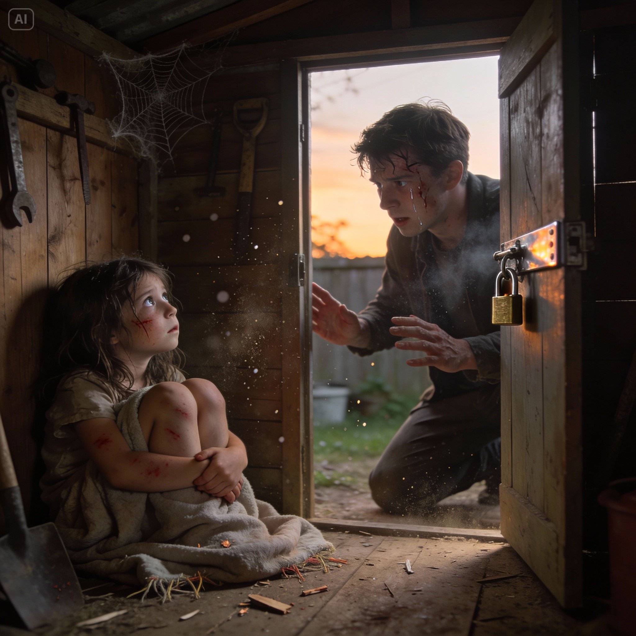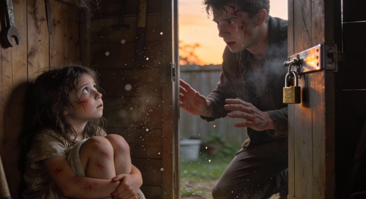 I sprinted toward the backyard, past the overgrown weeds and rusted swing set, until I reached the old wooden shed. The handle was tied with a rope. My hands shook as I tore it loose and yanked the door open.
